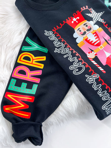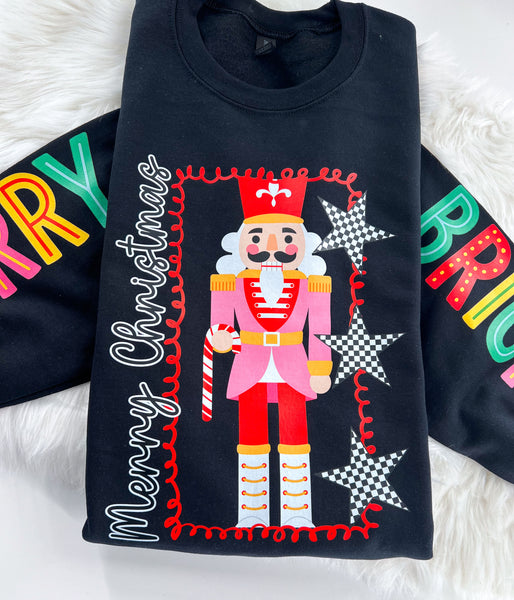 Merry Bright Nutcracker Checkered Christmas ~ Sweatshirt or Hoodie